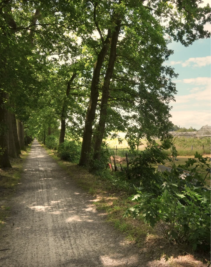 De unieke buitenplaats ‘De Hoeven’ is bereikbaar via een toegangsweg vanaf de Vaartweg, voorzien van fraai straatwerk. Hier zijn ook de extra parkeerplaatsen voor bezoekers. De royale woningen beschikken over een grote tuin, op een kavel van ca. 1.500 m2 eigen grond, en zijn bovendien slim gepositioneerd ten opzichte van elkaar, waardoor bewoners veel privacy ervaren. Zij weten zich omringd door ruimte en groen, want veruit het grootste deel van het ooit nagenoeg volledig bebouwde perceel wordt teruggegeven aan de natuur. De slootjes vormen zo een natuurlijke afscheiding met de buren, en vanuit de tuinen ontstaan mooie vergezichten op de vrije landerijen aan de achterzijde. Wie goed luistert, kan zelfs een steenuil horen krassen…